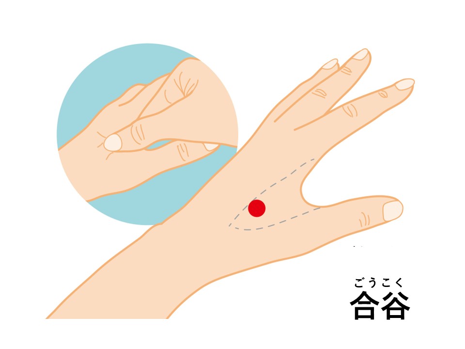 合谷は手の甲側、親指と人差し指の骨が交わる部分のやや人差し指寄りにあるツボです。万能のツボとも呼ばれ、血液の流れを良くするだけでなく肩こりや頭痛にも効果があります。仕事中でも気軽に押せるのが大きなメリットです。