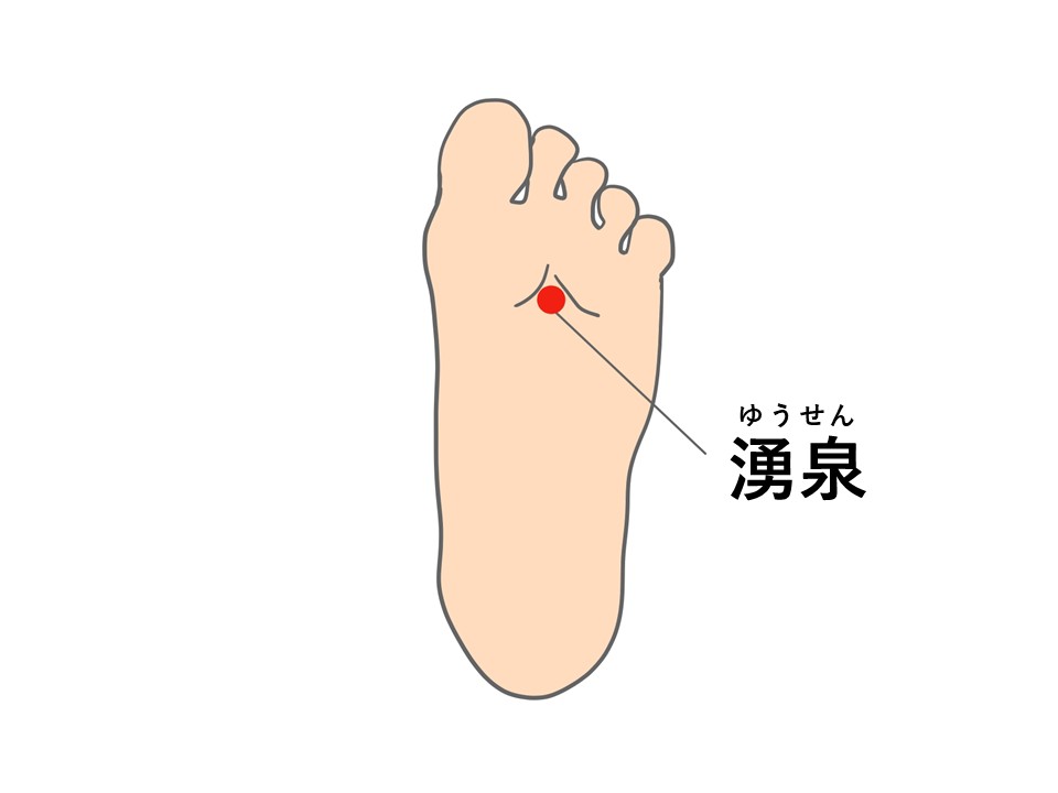 湧泉は足の裏の中央よりやや上、足の指を曲げたときにできるくぼみにあるツボです。「生命のエネルギーが湧き出る泉」という意味を持ち、体全体を温める効果があります。このツボは腎臓の働きを高める作用もあり、むくみの予防にもつながります。