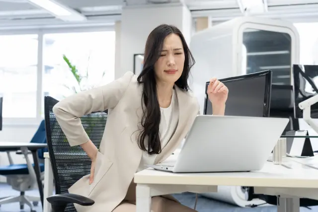 Tさんのような方に共通する特徴があります。椅子に浅く腰掛けて背もたれに寄りかかる座り方をしている、足を組む癖がある、椅子の高さが合っていない、モニターの位置が低くて前かがみになっている、といった習慣です。心当たりはありませんか?