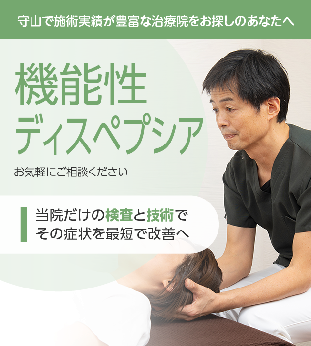 当院の構造と機能にアプローチし自然治癒力を高める施術は機能性ディスペプシアと非常に相性がよく、劇的に改善するケースも見られます。