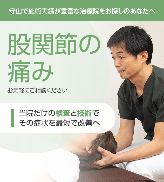 当院の構造と機能にアプローチし自然治癒力を高める施術は股関節の痛みと非常に相性がよく、劇的に改善するケースも見られます。