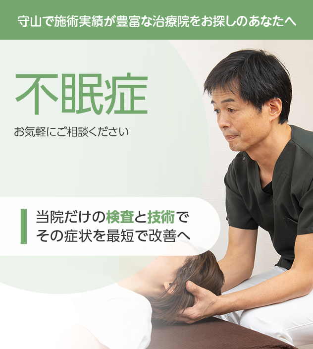 当院の構造と機能にアプローチし自然治癒力を高める施術は不眠症と非常に相性がよく、劇的に改善するケースも見られます。
